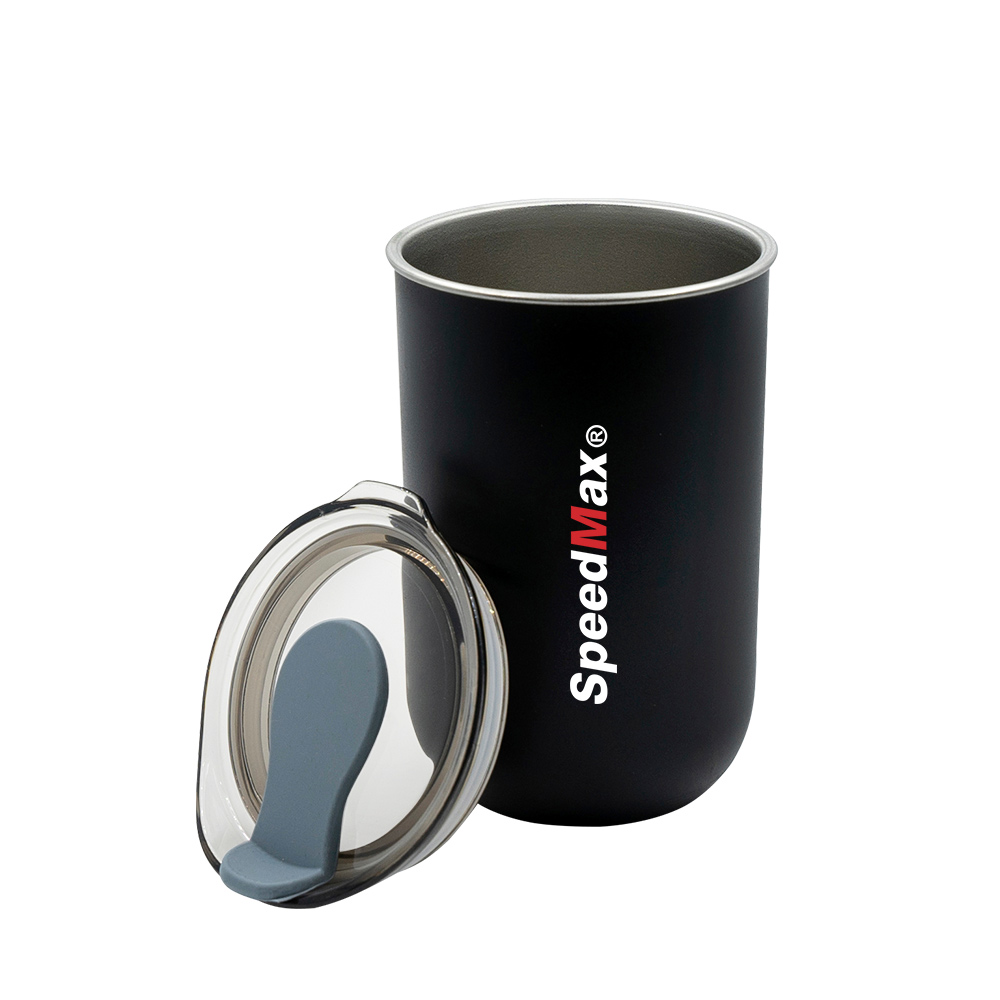Spill-resistant,push-on lid with swivel closure.